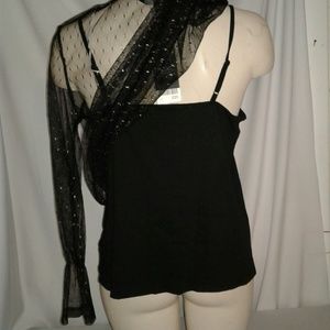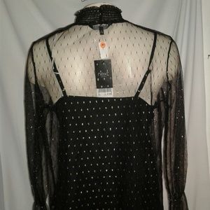 Brand: NEXT Black Sheer Shimmer Long Sleeve Turtle Neck Blouse Top With Spaghetti Strap Cami Underneath Size 12