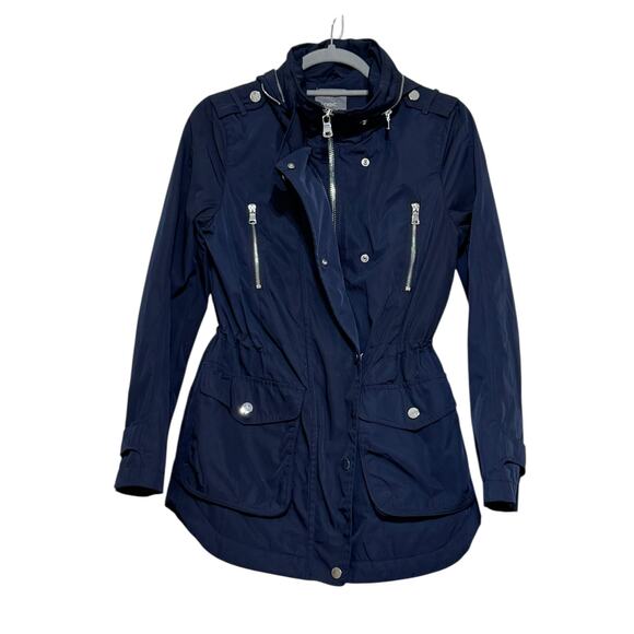 NEXT Women’s Navy Blue Cinched Waist Hidden Hood Utility Jacket Silver Hardware