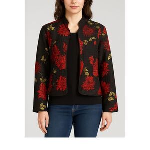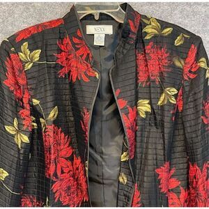 silk blend jacket, floral quilted blazer, women’s XL dressy jacket, NEXX silk linen, black red floral jacket