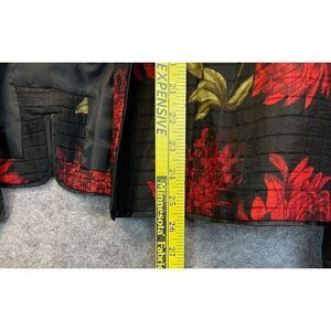 NEXX Women’s Jacket XL Black Red Floral Silk Linen Blend Open Front Quilted