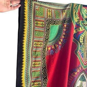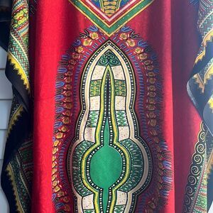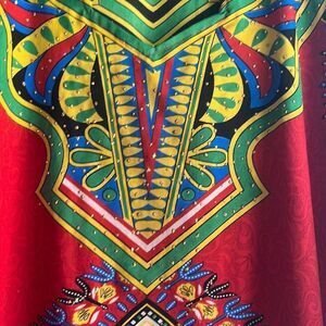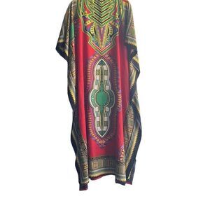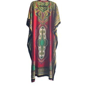 NF Free Size Kaftan Mumu Maxi Dress Red Green Tribal Print Bedazzled One Size