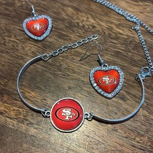 NFL 3 Piece Jewelry Set- Necklace, Bracelet, and Earrings Collection 49ers
