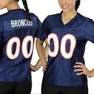 NFL Apparel Denver Bronco Jersey. Embellished with number 00. Measured on flat surface: Pit to Pit 19”, 23” long. 100% polyester. NEW with tag!