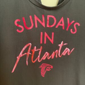 Atlanta Falcons women’s shirt, NFL Falcons top size medium, open back Falcons shirt, black red NFL women’s top, Atlanta Falcons game day shirt, split side women’s NFL shirt, women’s Falcons fan apparel