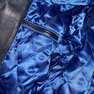 Support the Denver Broncos with this sleek vintage leather jacket. Bold Navy blue, black and orange design. Perfect for fans.