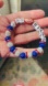 Stylish bracelet with blue and silver beads. Features 'GO BILLS' lettering and a football charm.