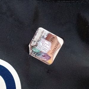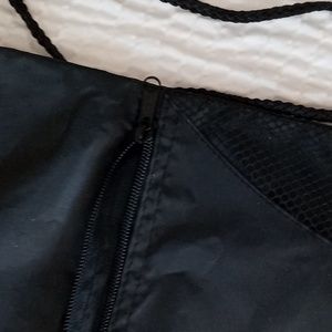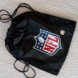 Great condition, black drawstring pack. Zippered front pocket, mesh sides. Photo 10 shows light flaws in the NFL decal. Measures 16"×14".