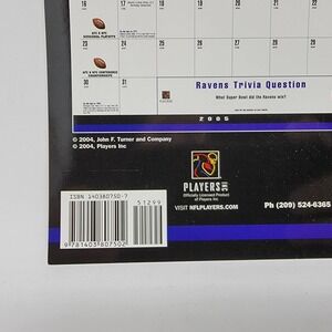 Baltimore Ravens 2005 Team Calendar 12x12" comes as shown