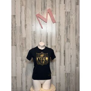 Keywords: NFL t-shirt, gold logo tee, football fan gear, women’s medium shirt, game day outfit, black NFL tee