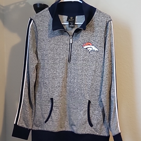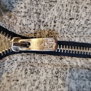 Never worn. Misplaced tags. Navy blue and white stripes down arms. Insert to keep hands warm. Light weight.