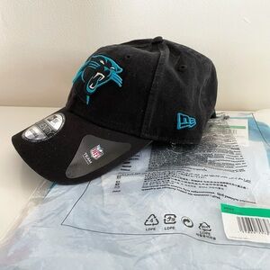 NFL Carolina Panthers Football On Field Apparel T-Shirt & New Era Hat Set. Shirt size XL. Brand new with tags and shirt in plastic. Shirt and hat included in set. Adjustable New Era hat, one size fits most. Shirt is printed with “Carolina Panthers, conference: NFC, division: south, est date: 1995.”