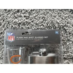 NFL Chicago Bears Flask w 2 Shot Glass Set Brushed Stainless Steel Portable New