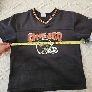 This is in good condition. Chicago bears jersey looking top. The size tag is cut off so I included photos with measurements. I believe it is an adult small.