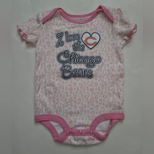 - (1) White Bodysuit with Pink Leopard Print All Over, "I love the Chicago Bears" with Team Logo in a Heart Graphic on Front, and Pink Trim