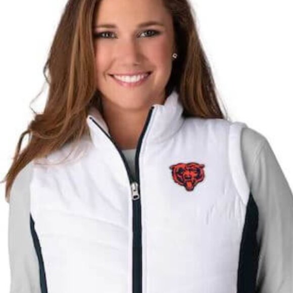 NFL Chicago Bears Women's Team Spirit Sleeveless Puffer Vest, White/Navy M NWT
