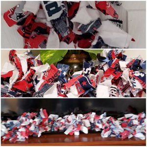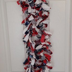 New 8 foot NFL Handmade Patriots Christmas Garland Red/white For your Man-Cave or basement bar... Can also be used for a Christmas Decoration This Brand New Personalized Rustic New England Patriots fabric garland is Handcrafted from Red and White and Blue 7 inch Licensed Poly Cotton Cloth Material Fabric Strips Hand Made And Hand-Tied by Me 3 3 available all 8 feet in length (96 Inches) available for $35.00 each Pickup in Bellingham Ma. This sweet hand torn fabric garland has a mix of red and white and Blue designs, perfect for your Man-Cave... Bar or Christmas Tree Measures 8 feet total. (96) Inches There will be fraying and loose threads, which adds to the charm! it also Makes a great gift for the die-Hard Patriots Fan "only 3 Left" It is full and festive and would be a lovely addition to your Christmas decor!