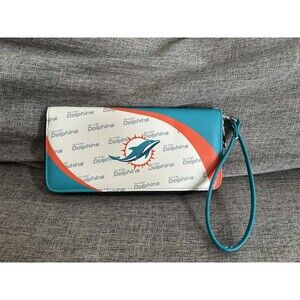 The NFL Curve Miami Dolphins Zip Around Wristlet Wallet by Little Earth is a stylish and practical accessory for female fans of the Miami Dolphins. Officially licensed by the National Football League, this wallet features the team's logo and colors, making it a perfect way to show off your team pride. With a convenient zip-around design and wristlet strap, this wallet is not only functional but also a fashionable statement for any football fan.