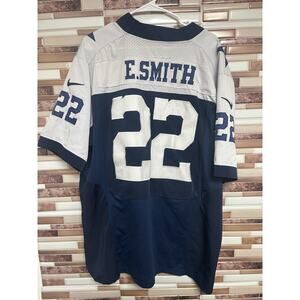 The product is an officially licensed NFL Dallas Cowboys Emmitt Smith Nike On Field Jersey. This unisex adult jersey in size 52 features the iconic blue color of the Dallas Cowboys and is perfect for any football fan looking to support their favorite team during the regular season. Made by Nike, this jersey is designed for on-field wear and showcases the legendary player Emmitt Smith, a Hall of Famer in the National Football League. Perfect for game days or casual wear, this jersey is a must-have for fans of the Dallas Cowboys and football enthusiasts alike.