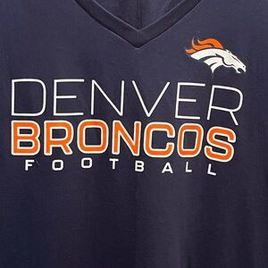 NWOT NFL Denver Broncos Football Women’s V-Neck Short Sleeve Tee. Size 2XL. Navy Blue with Orange and White Denver Broncos Football with Emblem on Front. 100% Cotton. Front Chest: 24” armpit to armpit. Hangs: 29” from front shoulder to bottom hem. New Condition!!! NFL apparel with logo. Comfortable and stylish.