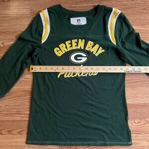 Keywords: green bay packers shirt, women’s nfl tee, vintage packers, wisconsin football shirt, retro sportswear, green gold football, nfl women’s medium, 90s inspired game day shirt, varsity striped shirt, vintage sports tee, green bay fan gear, y2k football shirt, NFL team apparel