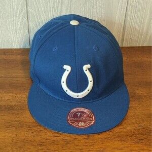 This amazing hat from the NFL Indianapolis Colts is brand new with tags. It is a Mitchell & Ness wool fitted hat. Size 7 1/2.