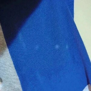 There are some small white spots on the one sleeve. Other than that there are no noticeable marks or tears on the item.