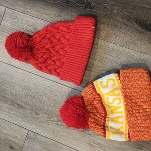 Red knit beanie with NFL logo. Designed for women.Both sold together size Medium