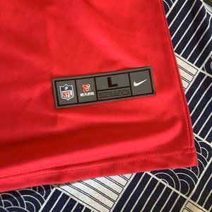Sewn-on NFL Shield at collar and satin twill woven jock tag at hem