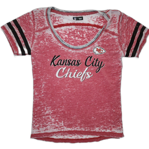 NFL Kansas City Chiefs Red Short Sleeve Football T-Shirt Size S. Super lightweight, burnout detail, scoop neck, contrasting short sleeves and neckline. Women's football t-shirt. Excellent condition.