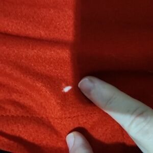 Small white spot on fabric near seam.