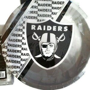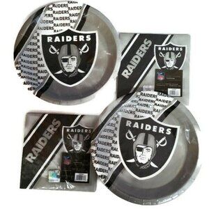 NFL Las Vegas Raiders Lot of 2 Napkin Packs & Plates Parties Tailgates Man Caves   NFL Las Vegas Raiders Lot of 2 Napkin Packs & Plates Parties Tailgates Man Caves       * (2) Packs Of Partyware Dinner Napkins and Disposable Plates * NFL Las Vegas Raiders * Great For Parties, Tailgating, Picnics, Man Caves and Everyday Use * Napkin Size: Approx. 6.5" x 6.5" (12 7/8" x 12 3/4" Fully Opened) * Disposable Plate Size: 9.75" * Each Napkin Pack Contains 8 Napkins (2 x 8= 16 Total Napkins) * Each Plate Pack Contains 8 Plates (2 x 8= 16 Total Plates) * New In Packaging (Packaging May Have Slight Shelf Wear) * *****(Please see photos).***** Item in the photos are of the actual item.  100% GENUINE – USA SELLER