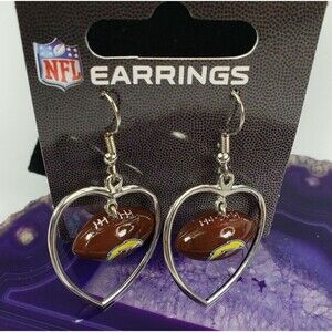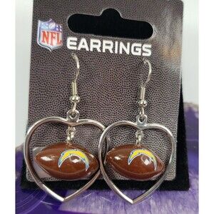 NFL Los Angeles Chargers Football in Heart Hoop Earrings Sports Collectables