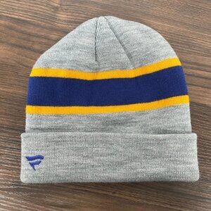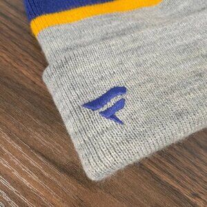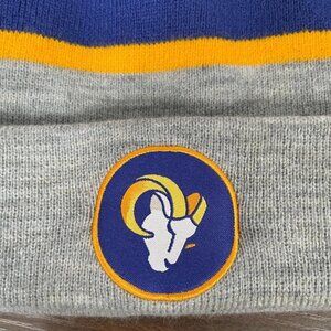 Beanie top has a slight flat side due to the way the tags were sewn, but certainly doesn't affect the practicality and functionality. Features the LA Rams logo as an embroidered fabric applique on the cuff. Warm and comfortable - perfect for colder weather and is officially licensed NFL gear. Includes an unworn bracelet. Please review all photos for more details + do not hesitate to reach out with any questions.