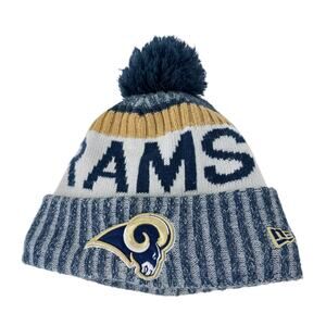 NFL Los Angeles Rams On Field New Era Beanie Hat Mens OS Knit Acrylic w/ Pom Pom