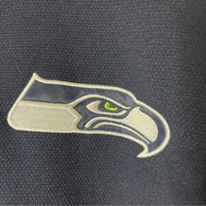 NFL Mens Seattle Seahawks Navy Green Full Zip Fleece Lined Jacket. Size Extra Large. Two side pockets. 98% polyester, 2% Spandex.