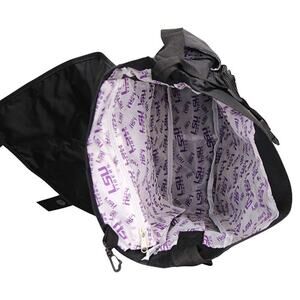 Boasts stroller handle clips, magnetic snap closure and webbed carry straps