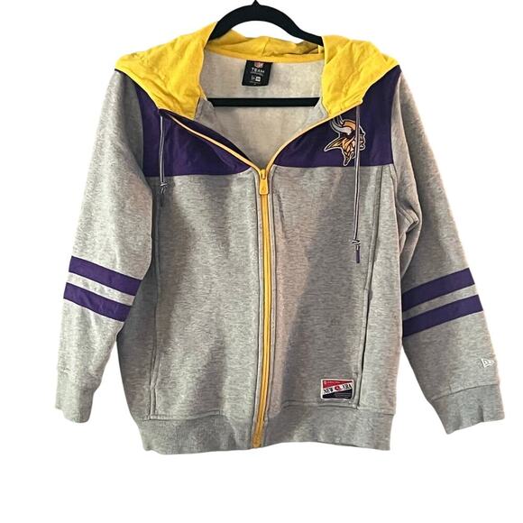 NFL Minnesota Vikings New Era Full Zip Hoodie Women’s Medium Gray Purple Gold
