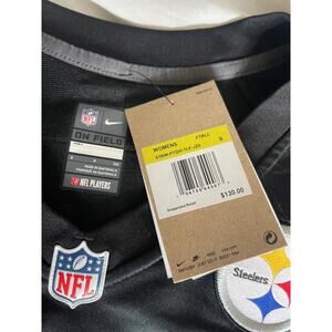 The product is a Nike women's Steelers jersey in size small, featuring the official team colors and logo. This officially licensed merchandise is designed for female fans of the National Football League (NFL) and is perfect for showing support for the Steelers during game days or casual outings. With its quality materials and authentic design, this jersey is a must-have for any Steelers fan looking to represent their favorite team in style.