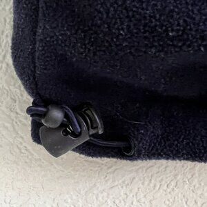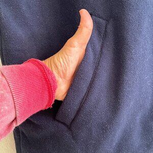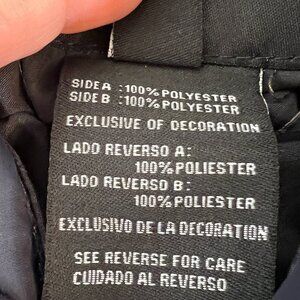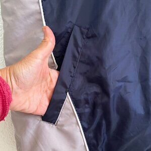 One side Nylon, one side Fleece, both with pockets and team Emblem