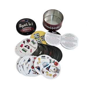 NFL New England Patriots Spot It! Kids Matching Card Game. New in metal tin, no original box. For ages 7+. Includes directions and 55 playing cards with symbols. See all photos.