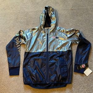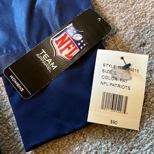 Brand new with Tag NFL New England Patriots light jacket with hood. Women size Large. No Trade please. Thank you for liking and sharing my listing 😍. I appreciate it 👍.