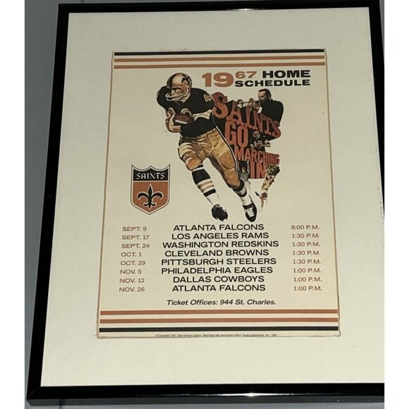 NFL New Orleans Saints 1967 Football Home Schedule Framed Matted Arthur Hardy 91