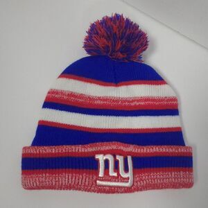 NFL New York Giants Adult Knit Beanie Hat Striped Fleece Lined Blue Red Football