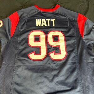 Size Large JJ Watt unisex Houston Texans Jersey. Has paint stains. See all pics. This could be used for decoration if you frame it and display the back since the back is in great condition. Could also be used to make a pillow or whatever else you can think of. Good quality material. Get this for the JJ Watt fan/Texans fan in your life!