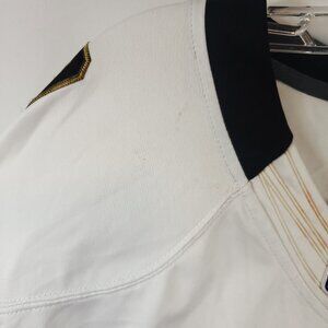 In Fair Condition. Body of jersey is fine no visible rips tears so forth but there are light staining randomly on jersey. One darker stain on back as pictured as well. Jersey has been quick washed. Pictures have been posted of stains. Light Staining but still slightly visible in the right light. PLEASE READ ALL DETAILS BEFORE PURCHASING!!!