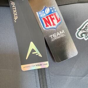 NWT Men's NFL Philadelphia Eagles Antigua Hooded Performance Jacket in two-tone black and smoke gray color.