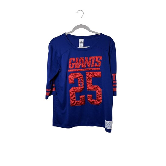 NFL Pink Victorias Secret Giants 25 Jersey Womens 3/4 Sleeve Blue & Red Size M