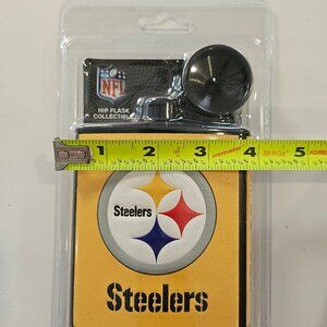 A new in sealed plastic packing. NFL, Pittsburgh Steelers plastic hip flask. Collectible with funnel. 7 ounce tailgate party. Plastic hip flask. Pro specialties group. NFL Pittsburgh Steelers. Textured team colored wrap. Hanged screw top lid and funnel for easy filling. Colors yellow. Size 7 ounce. New in packaging (May have shelf wear) see pics. Non smoking pet free home. @ BR #3