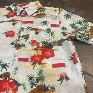 NFL Poland Floral Men’s Button Up Hawaiian Polish Shirt Size Large