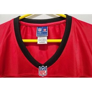 The product is a women's XL Atlanta Falcons blank jersey in red, officially licensed by the NFL Pro Line.